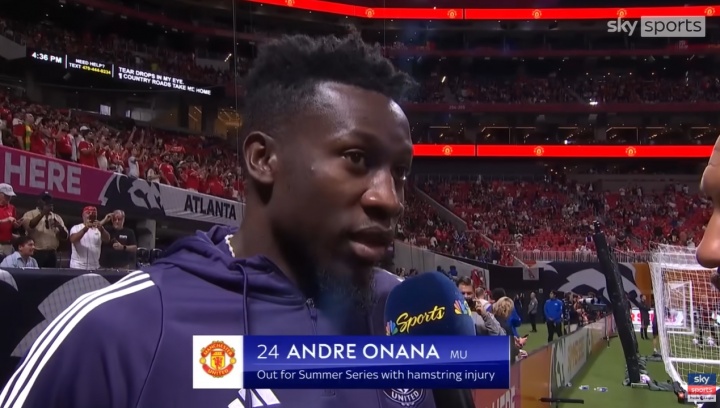 08月04日讯 由于碰到伤病困扰,曼联门将奥纳纳今夏莫得插足球队的季前赛。在曼联2-2战平埃弗顿的比赛前,奥纳纳在场边罗致了太空体育的采访。