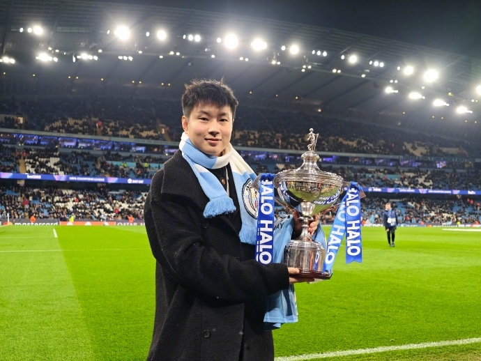 11月26日讯 欧冠联赛阶段第5轮曼城主场迎战勒沃库森,斯诺克世锦赛冠军赵心童现场不雅赛,获赠号码为“147”的曼城球衣,并在社媒为曼城加油:“Come on City!!!😎”