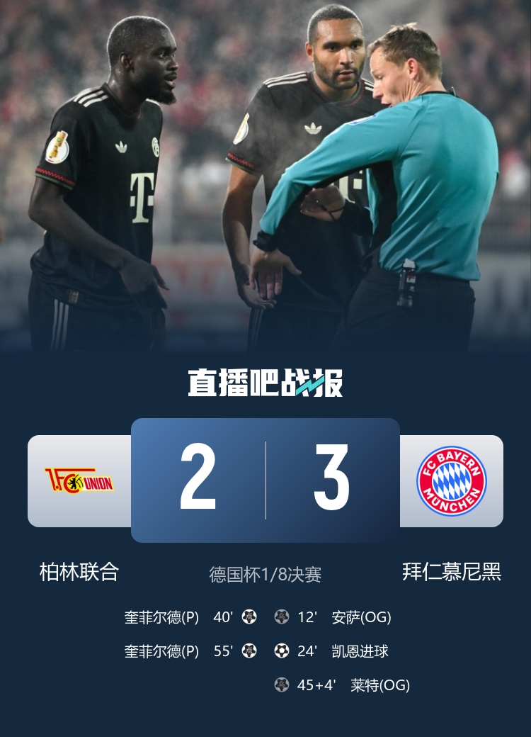 12月4日讯 德国杯1/8决赛,柏林聚拢主场2-3不敌拜仁,无缘下一轮。