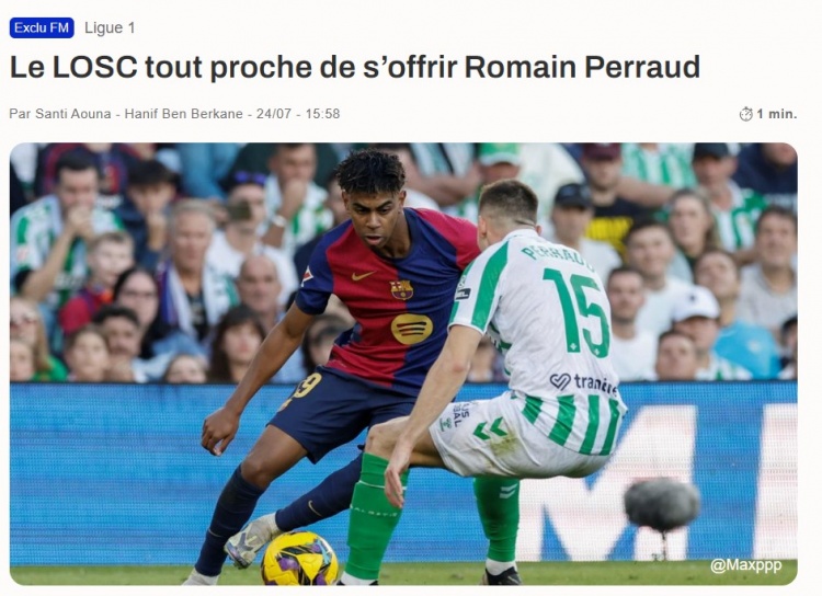队报:里尔特意贝蒂斯左后卫罗曼-佩罗,辩论还是插足真切阶段