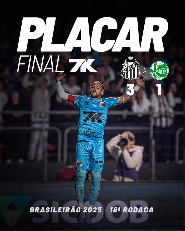 08月05日讯 巴甲联赛第18轮,桑托斯3-1打败尤文图德,闭幕三轮不堪跳出左迁区,内马尔梅开二度得益赛季第6球。