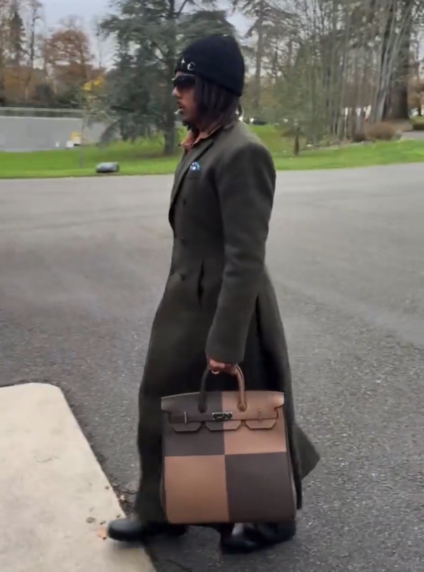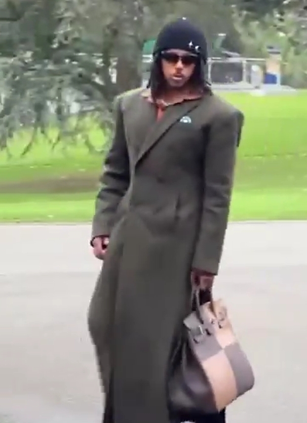 太潮了!孔德最新前卫穿搭:身穿长大衣,手拿包