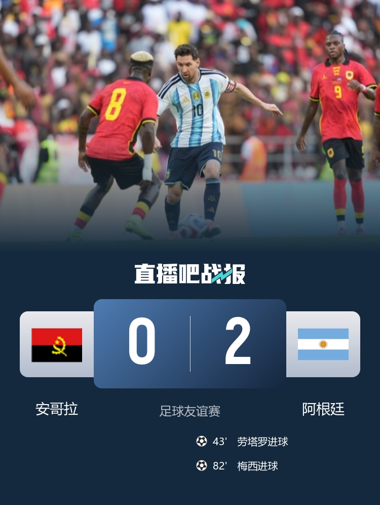 今天凌晨进行的一场友谊赛,阿根廷客场2-0降服安哥拉,梅西和劳塔罗彼此传射。