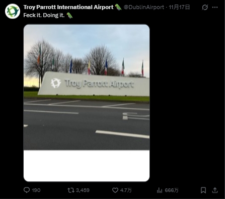 理睬英杰胜利!爱尔兰齐柏林机场玩笑:咱们更名叫“帕洛特机场”