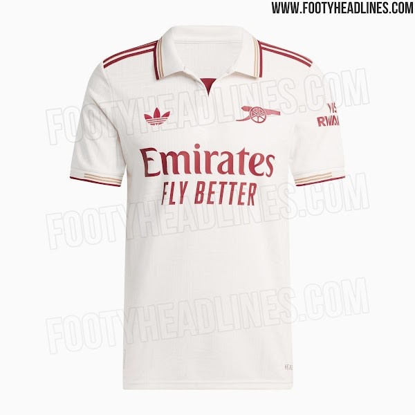 7月31日讯 足球装备网站footyheadlines显现阿森纳25-26赛季第三客场球衣信息,球衣主颜色为白色,红色(该网站将其形容为褐红色)以及金色来进行搭配点缀。