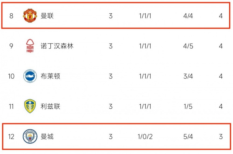 此前,曼联一度因开局糟糕战绩成为球迷的笑料,而曼城3轮过后比曼联还少1分。
