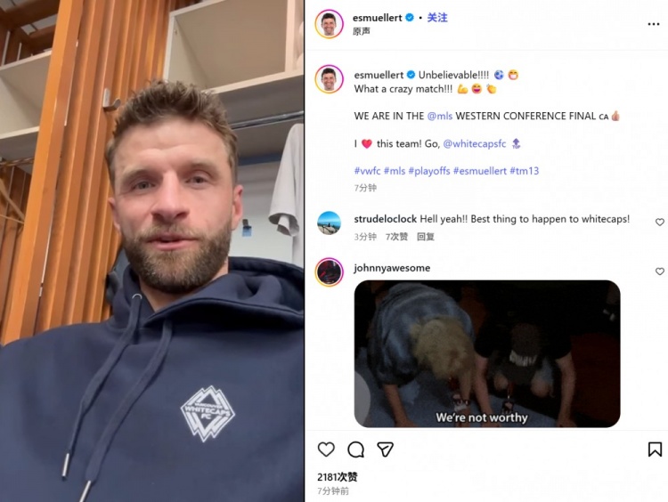 他也在赛后通过社媒纪念晋级:“难以置信!!!! ⚽️😁多么疯狂的一场比赛!!! 💪😄👏我们晋级西部决赛了👍🏼我❤️这支球队!加油, @温哥华白浪🔝”