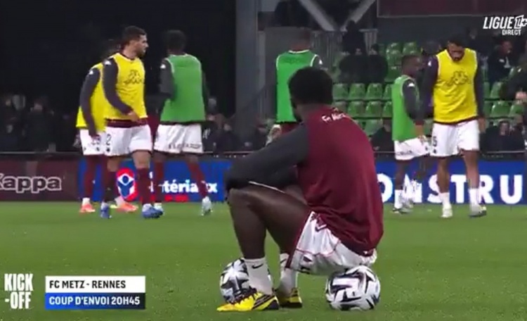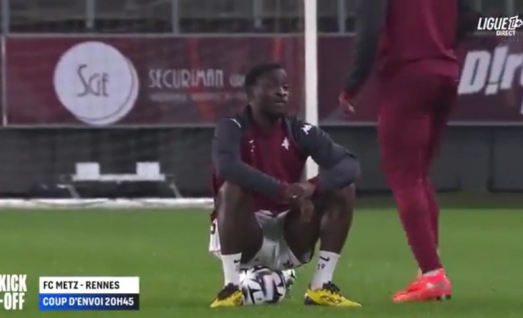 不满自己无缘首发!梅斯后卫赛前拒绝参加热身,坐在足球上不动弹
