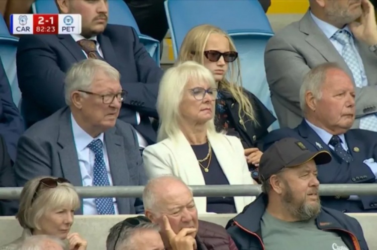 卡迪夫城最终2-1获取比赛,弗格森是这场比赛的次要看点,他被录像机捕捉到坐在看台上,身旁是彼得堡联足球总监巴里-弗莱。弗莱曾在老特拉福德青训营受训,但未代表一线队出场过。
