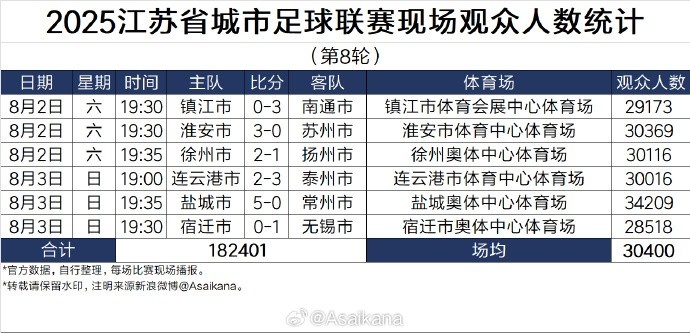 2025江苏省城市足球联赛现场不雅世东说念主数统计(第8轮)