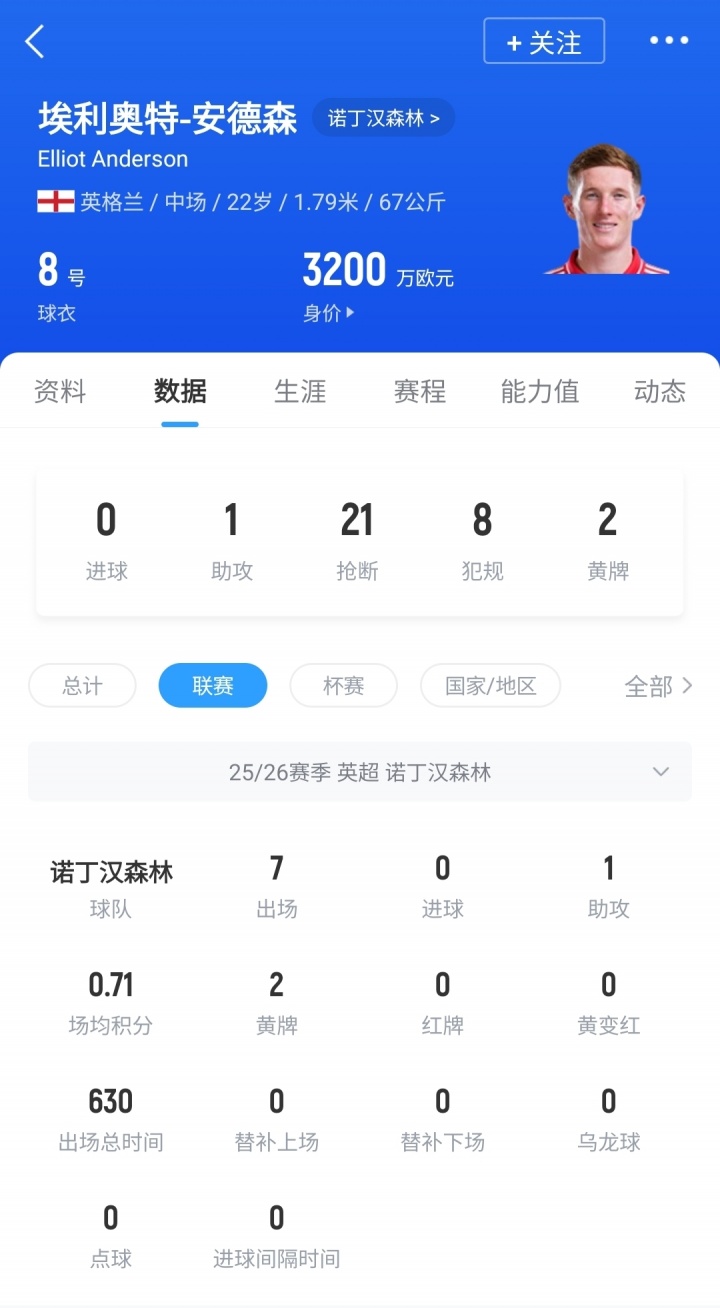 现年22岁的安德森于2024年以3500万镑从纽卡转会至诺丁汉丛林,如今已成长为英超最轮廓的新星之一。