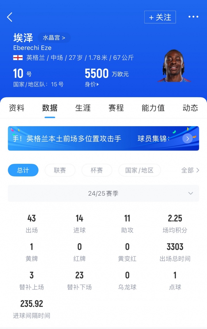 水晶宫知说念阿森纳对埃泽感兴趣,埃泽也尽头舒畅加盟阿森纳,枪手的邀请对球员来说似乎难以拒绝。