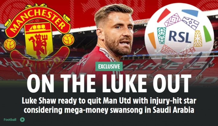 英媒《太阳报》当天发布独家新闻,称30岁的卢克-肖探究冬窗离开曼联,前去沙特淘金。