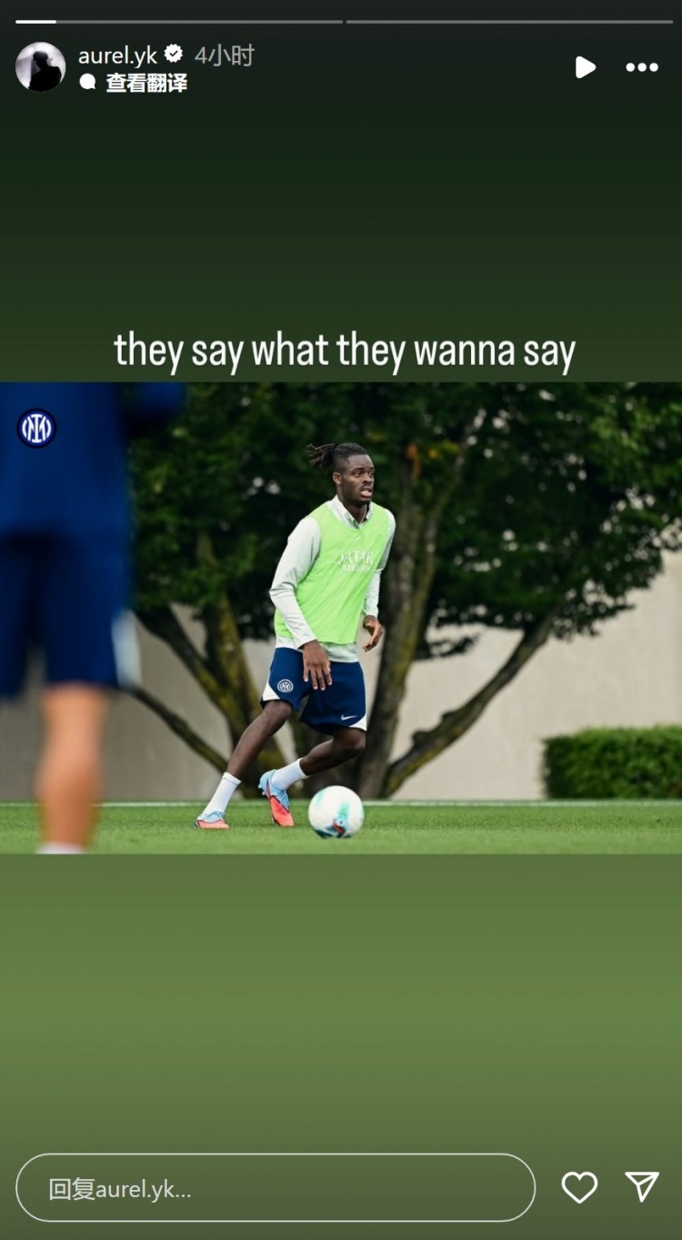 比塞克社媒晒出磨真金不怕火相片,配文:“他们思说什么就说什么。”并配上了国米的队徽。