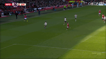 第3分钟,诺丁汉森林中场球员完成抄截 ,桑加雷送出挑传,奥多伊危险区域 内几乎单刀赴会球的机会,面对阿利松一脚射球 被挡出。↓