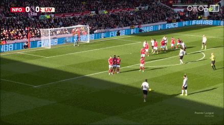 第19分钟,诺丁汉森林前场定位球机会,吉布斯·怀特做球,穆里略爆射,这球击中人墙弹出。↓