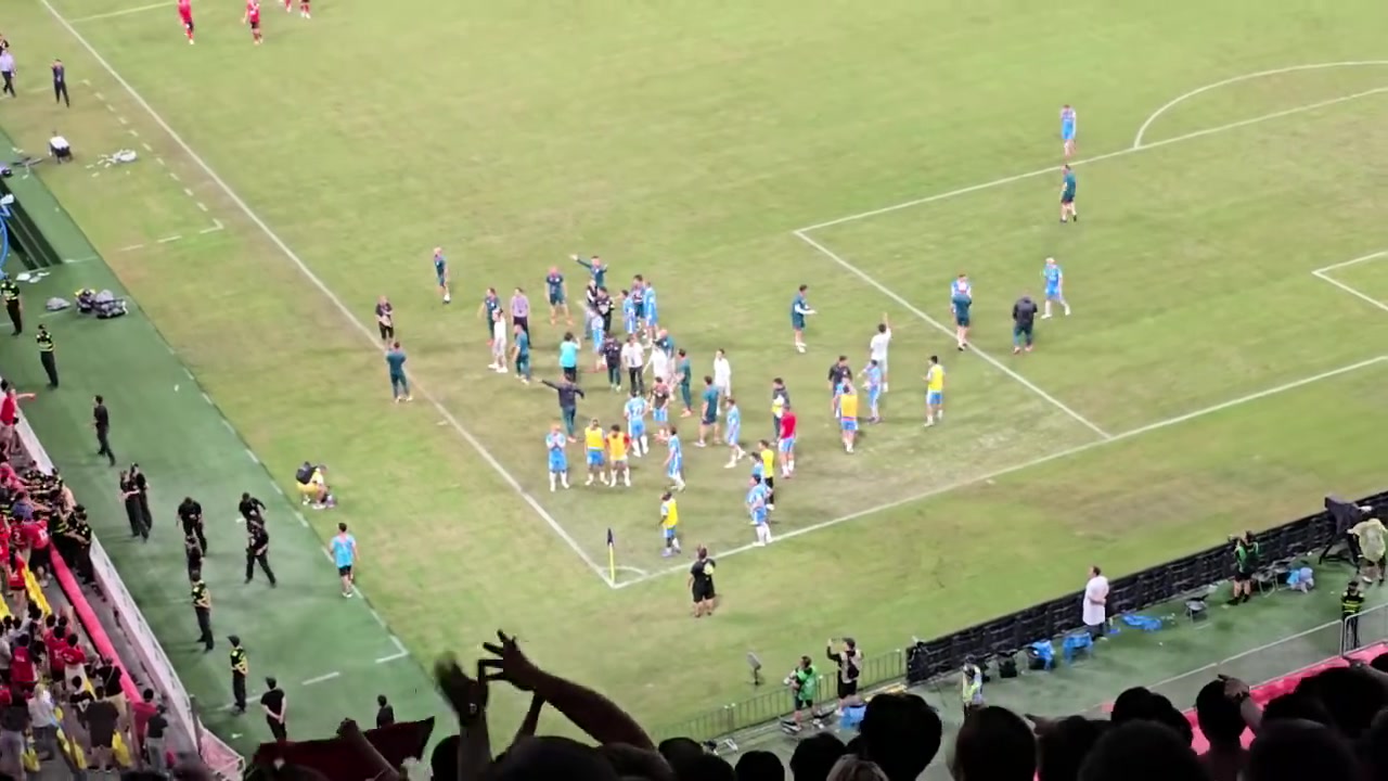 2025年8月19日22时许,足协杯半决赛散场本领,个别不雅众发生残害。我局现场执勤警力与安保东说念主员立即向前制止,并连忙将涉案东说念主员带离现场。