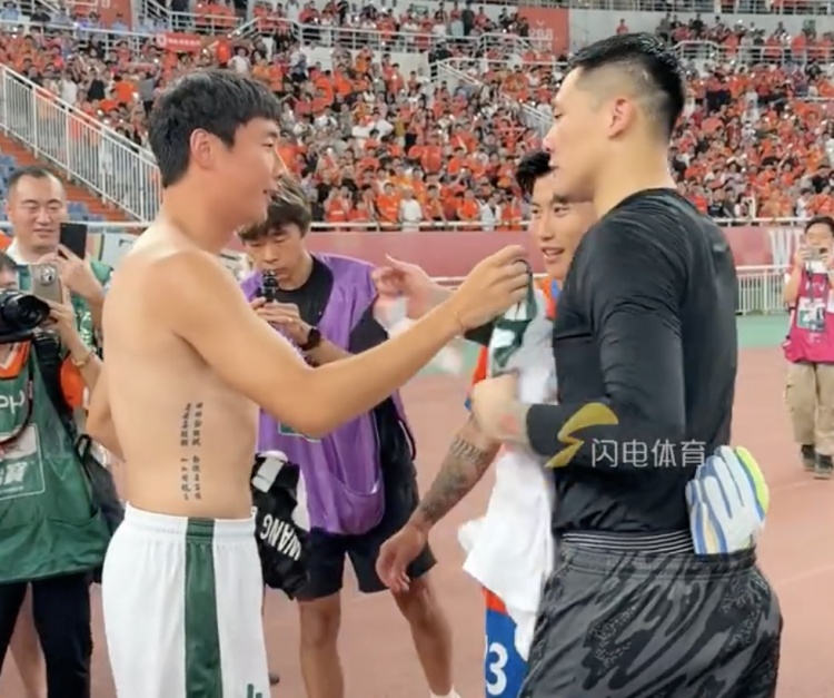 8月31日讯 据闪电体育报谈,今晚京鲁大战后,王大雷和李磊两名国脚交换了球衣。