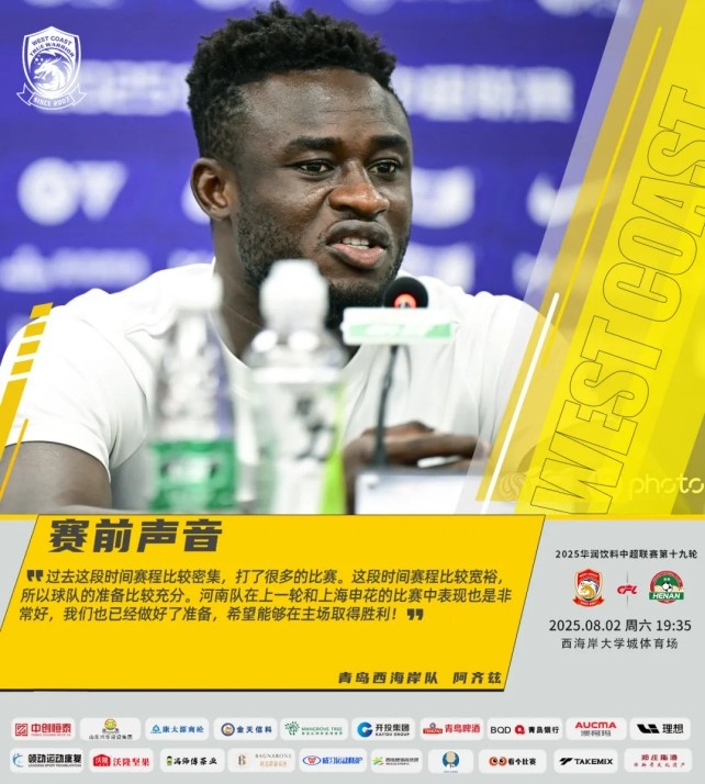 8月1日讯 来日19:35,中超第19轮,青岛西海岸主场对阵河南队,球队主帅邵佳一赛前暗意,河南队换帅后攻防都理解可以。