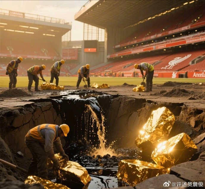 著明评述员詹俊对此挑剔谈:“跨越一亿英镑的首份报价被拒,赤军球迷还得链接挖坑才行......”并晒出了一张AI生成的“利物浦球场下挖石油和金矿”配图。