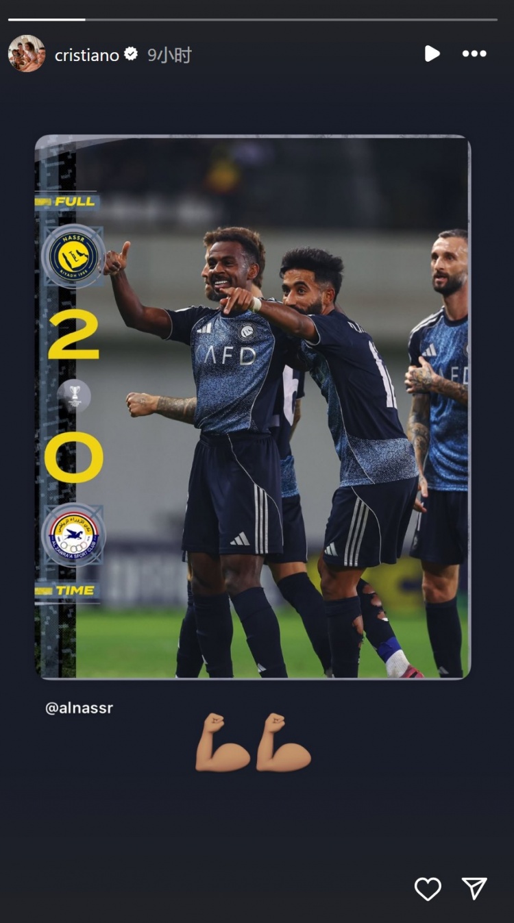 此役C罗轮休莫得出战,他在酬酢媒体上晒出比赛海报,庆祝利雅赢得手取胜。