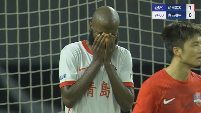 10月04日讯 中超第24轮补赛,梅州客家vs青岛海牛,比赛第75分钟,兰克尔-泽后点靠近泰半个佛门踢偏,我方亦然捂脸不敢投诚,梅州门将郭全博王人笑了。