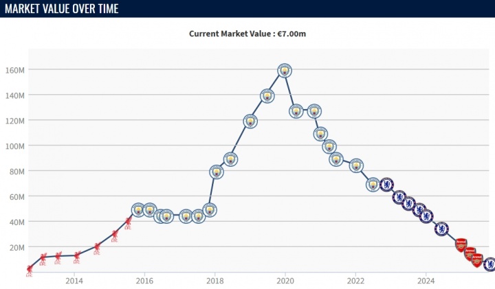 而在2019年,那时在曼城的斯特林达到过个东说念主处事生存身价巅峰,高达1.6亿欧元,但之后球员状况下滑,5620万欧转会切尔西后也长久莫得达到预期。斯特林在上赛季还被租赁至阿森纳,但发达仍然不尽东说念办法。