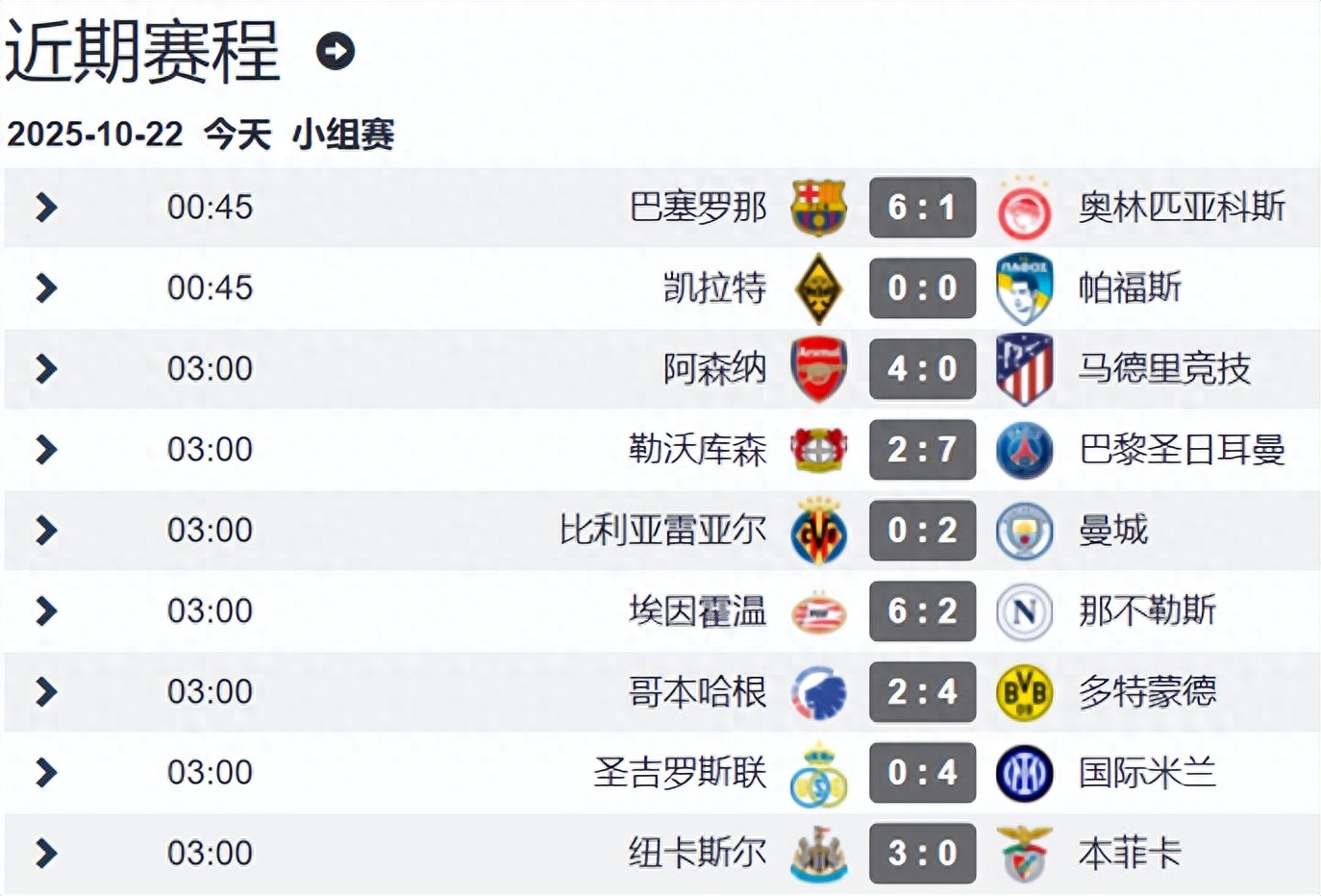 欧冠联赛阶段第3轮首日的9场比赛一经一齐战罢,各大权门球队纷纷开动“屠杀”形态,意甲卫冕冠军那不勒斯大比分输荷甲球队的确脸都不要了,英超三队一齐告捷。