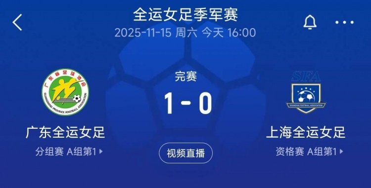 广东女足1-0胜上海女足,夺得全运会女足铜牌