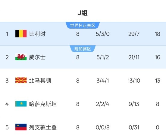本组头名为积18分的比利时,欧洲红魔将纵贯宇宙杯。