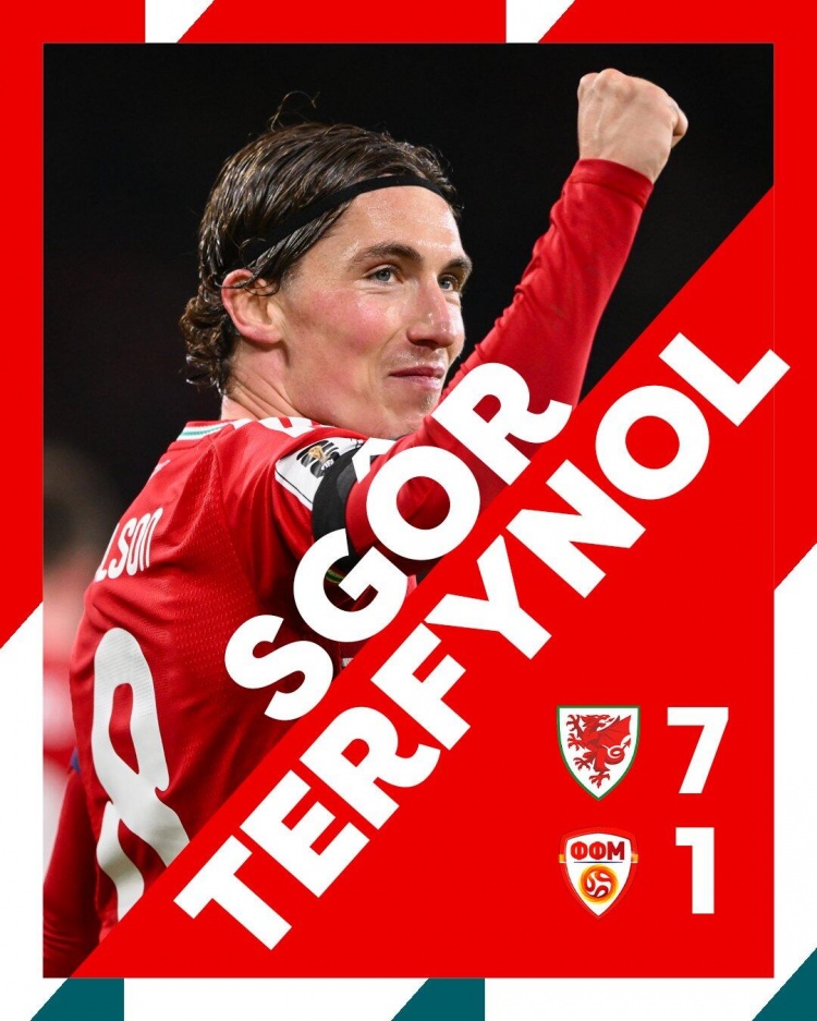 11月19日讯 世初赛欧洲区小组赛J组终末一轮,威尔士7-1降服北马其顿。