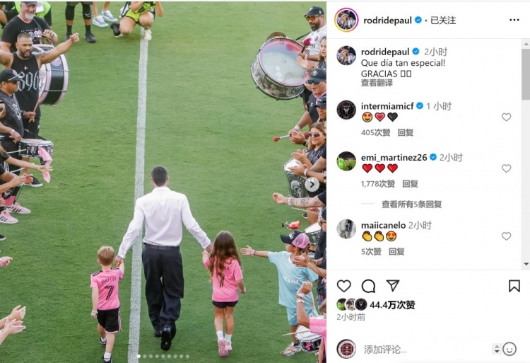 大马丁点赞!德保罗社媒晒亮相迈阿密海外像片:何等绝顶的一天