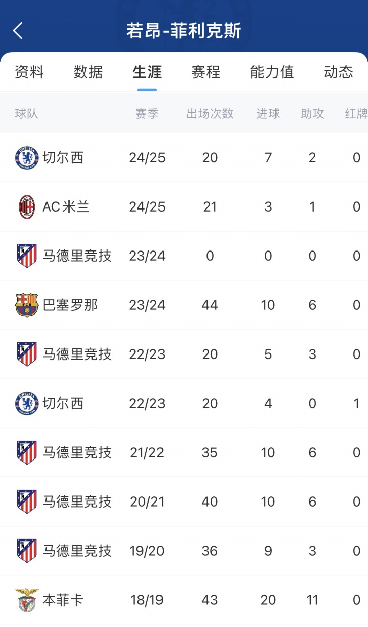 至此,25岁的菲利克斯行将时隔6年重返本菲卡,截止在五大联赛的“流浪”。